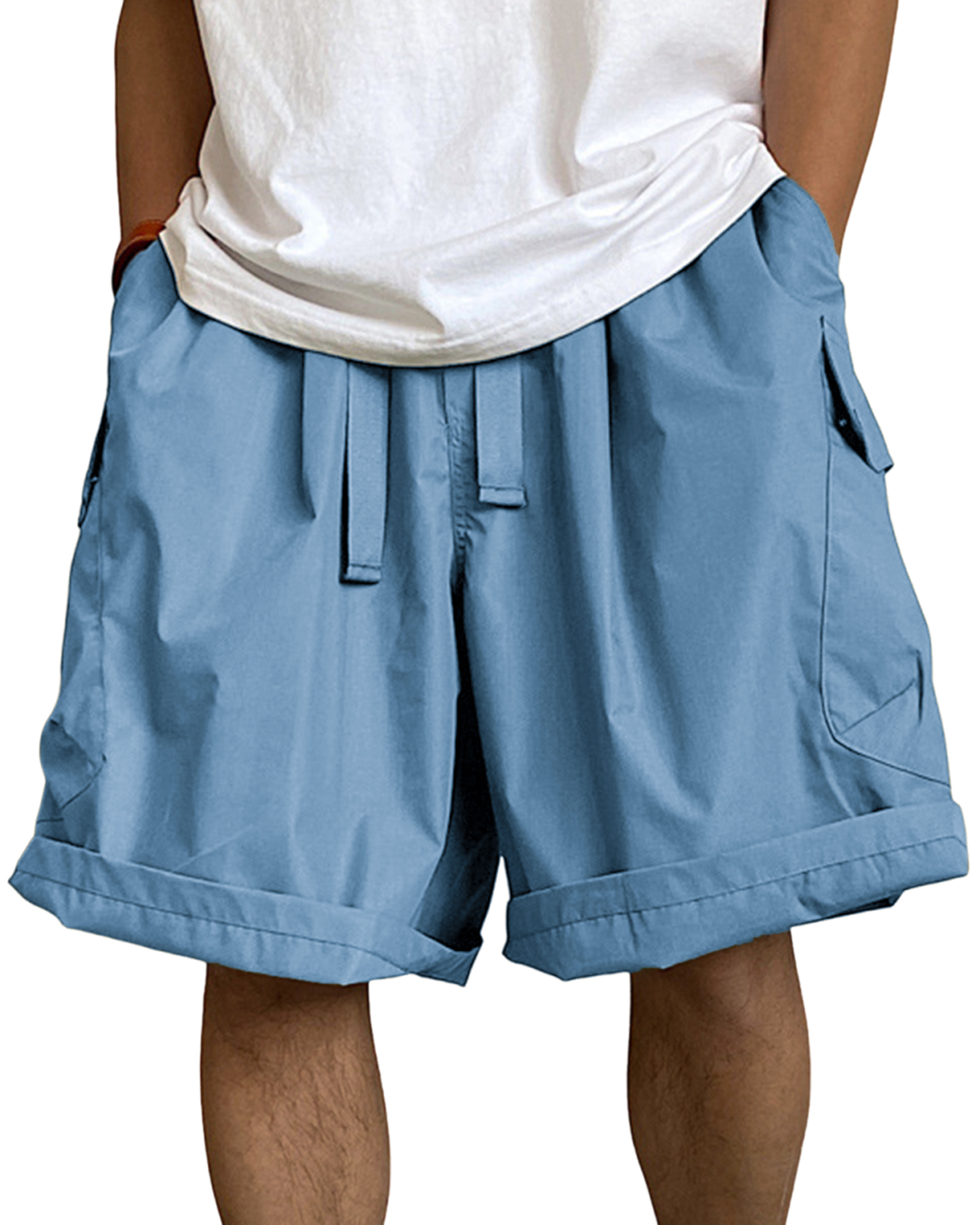 Men's Multi-Pocket Cargo Shorts Breathable Loose Drawstring Shorts with Side Pockets