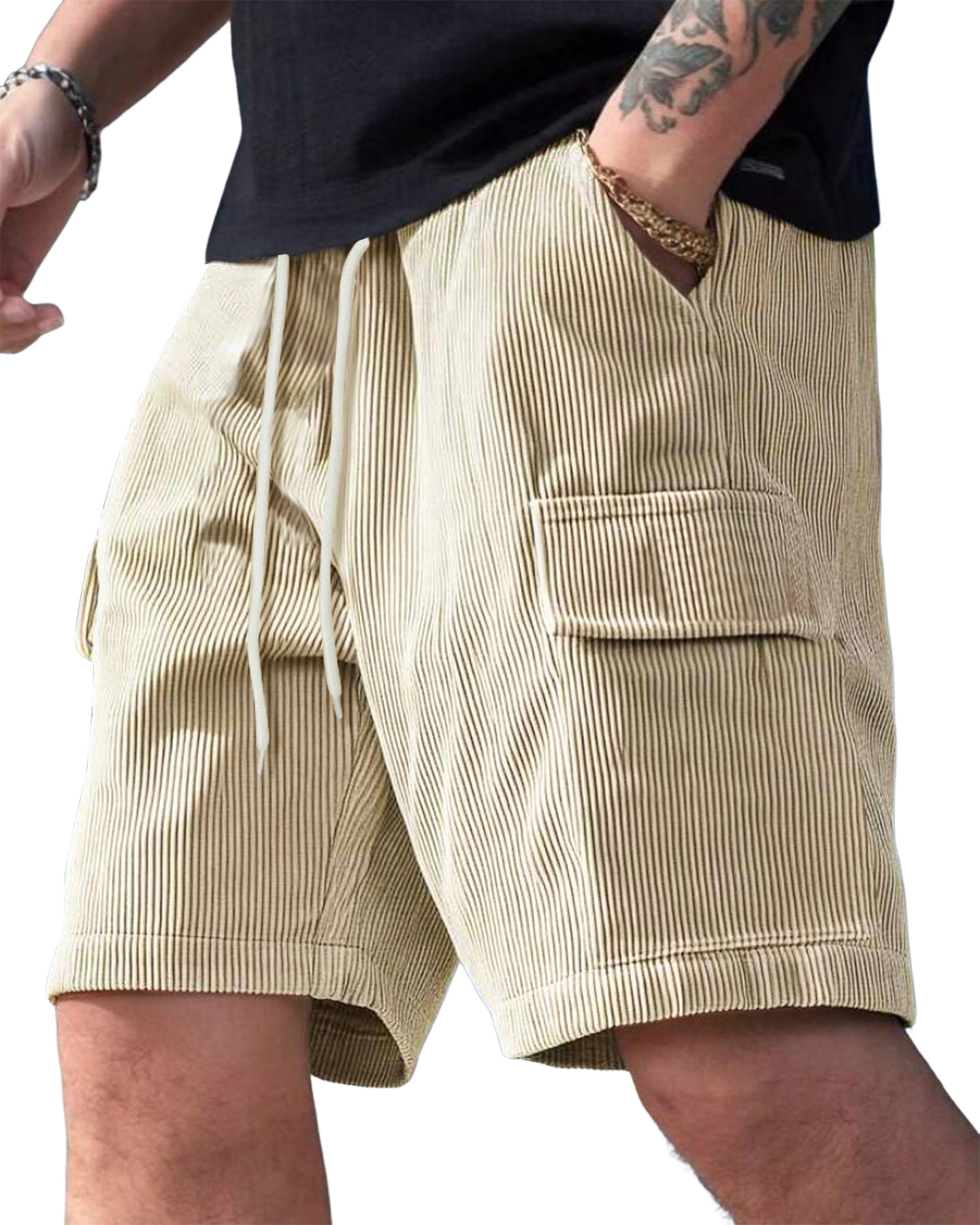 Men's Vintage Multi-Pocket Cargo Shorts Corduroy Stylish Lace-Up Casual Shorts