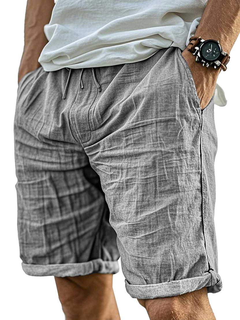 Men's Linen Comfort Lace-Up Everyday Casual Shorts with Side Pockets