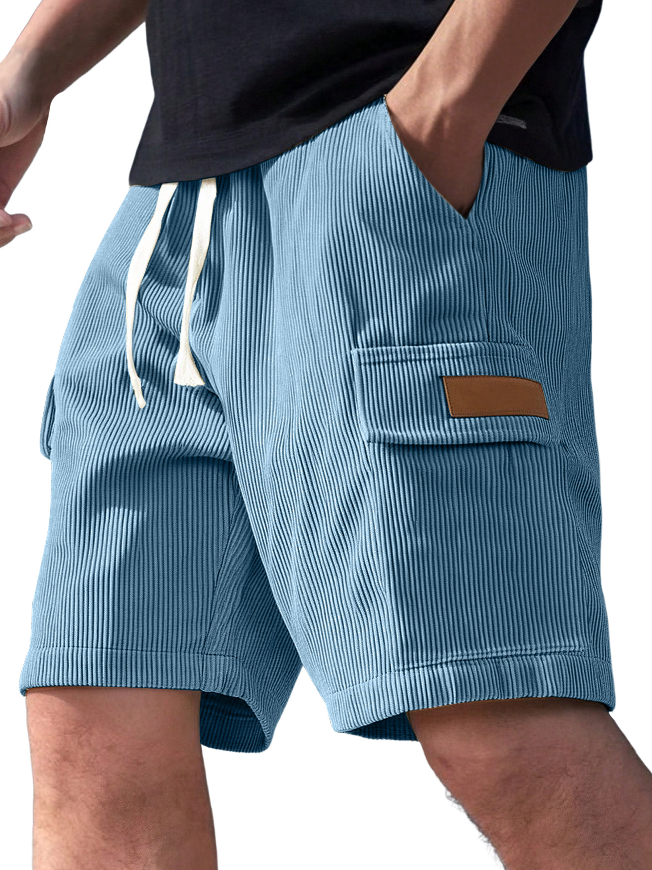 Men's Corduroy Stylish Multi-Pocket Lace Up Utility Casual Cargo Shorts