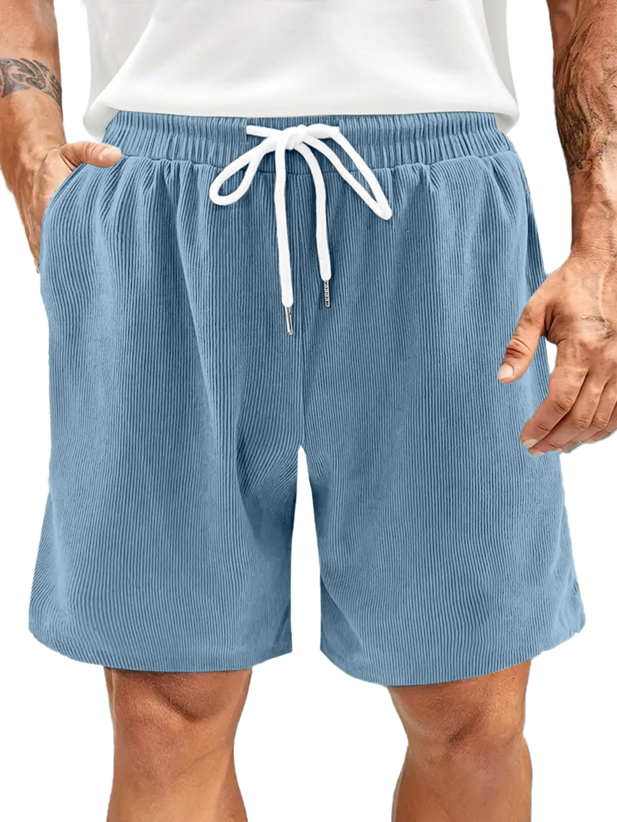 Men's Everyday Corduroy Waffle Casual Loose Drawstring Comfort Shorts