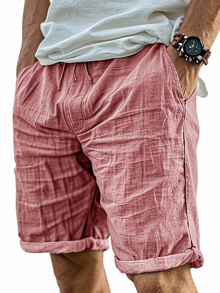 Men's Wrinkled Linen Breathable Resort Casual Embroidered Label Shorts