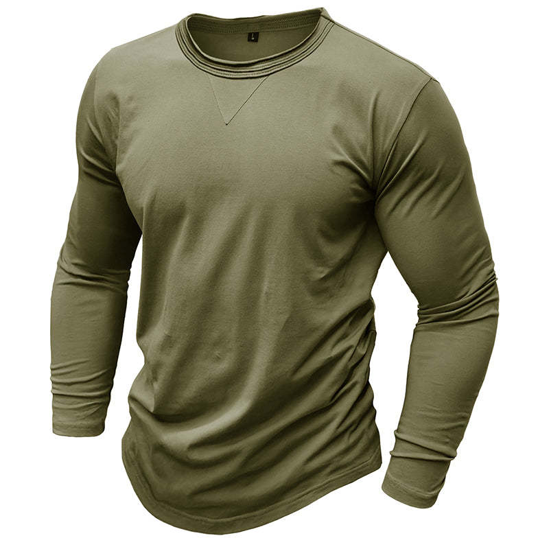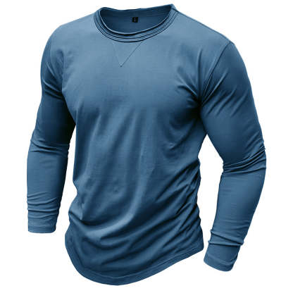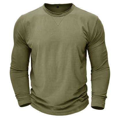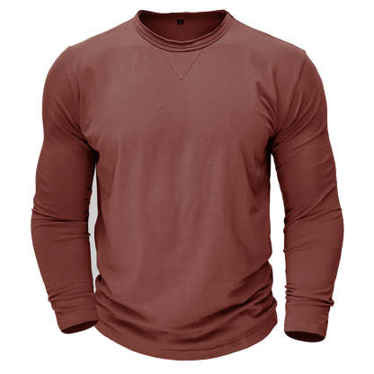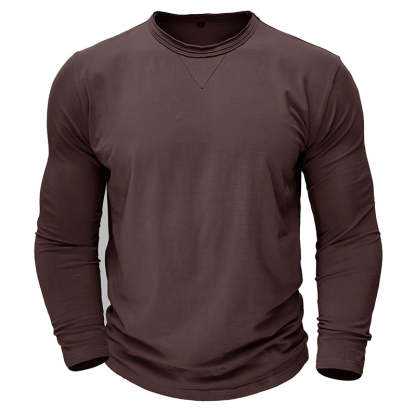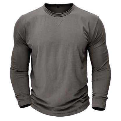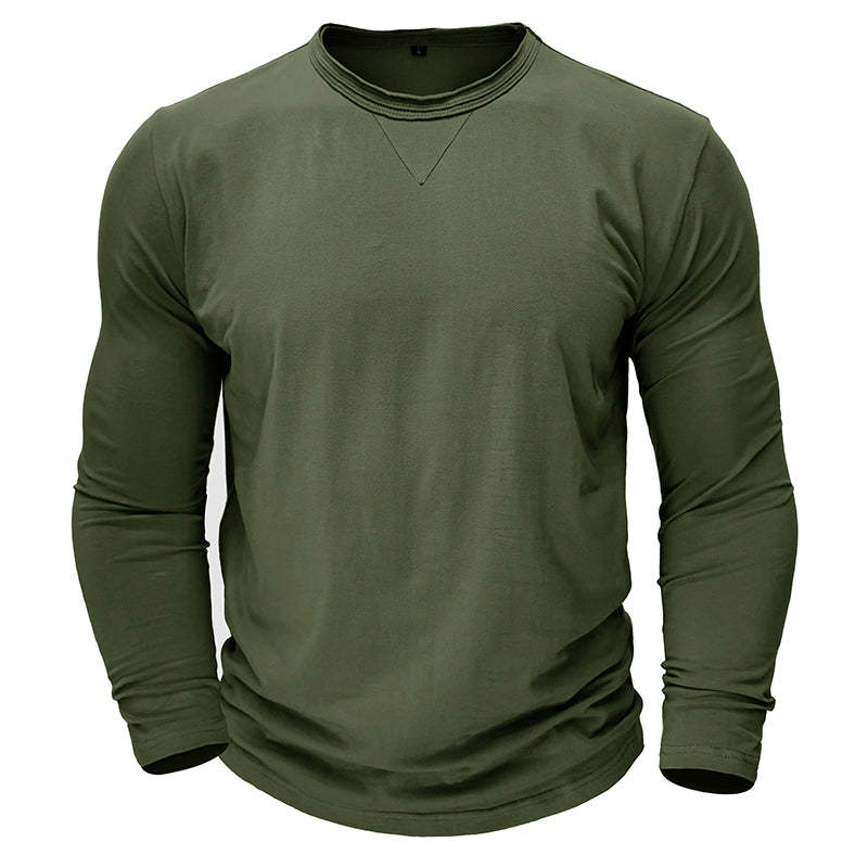 Men's Retro Stand Collar Zipper Casual Loose Solid Color Long Sleeve T-shirt