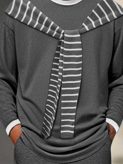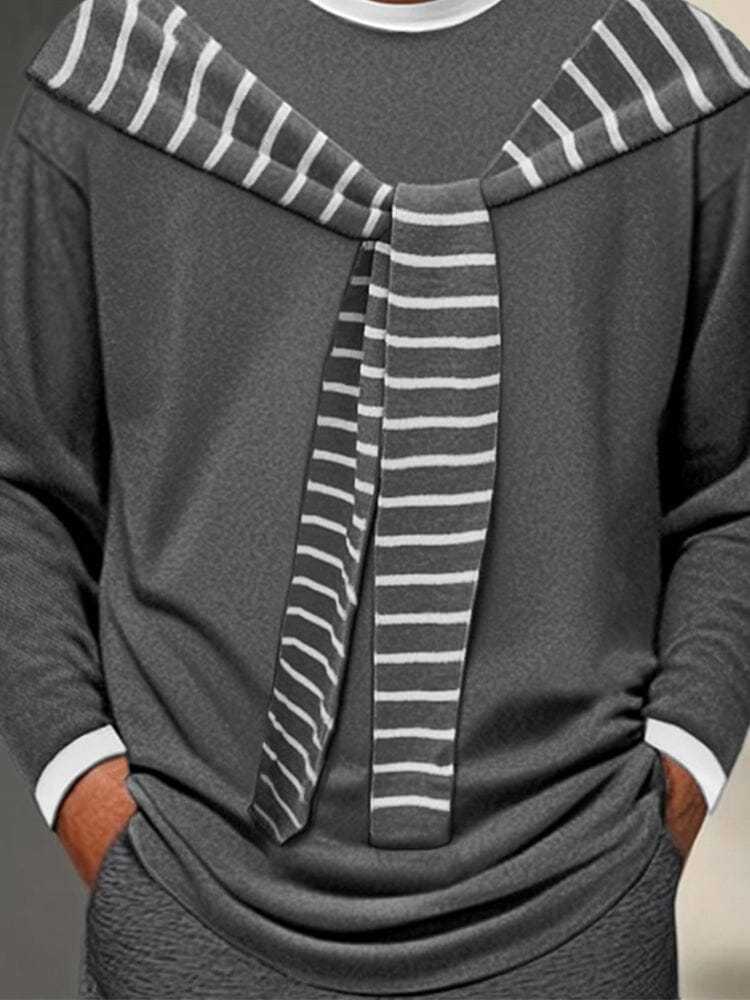 • Design: Fake two-piece design, striped shawl scarf, crew neck, colorblock neck and cuff