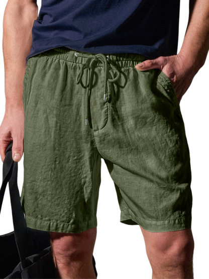 Men's Wrinkled Linen Breathable Resort Casual Embroidered Label Shorts