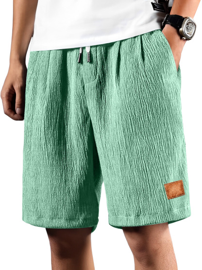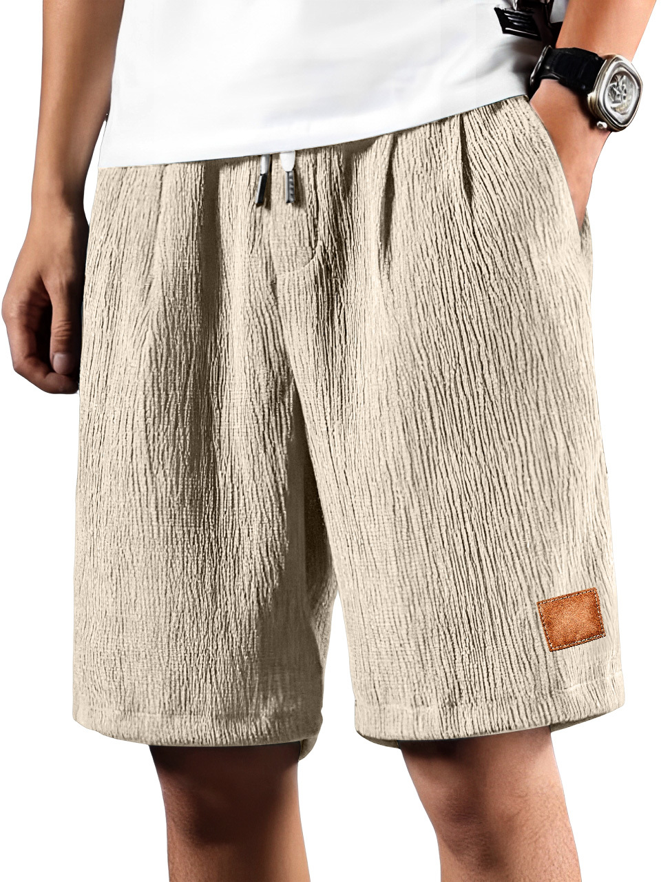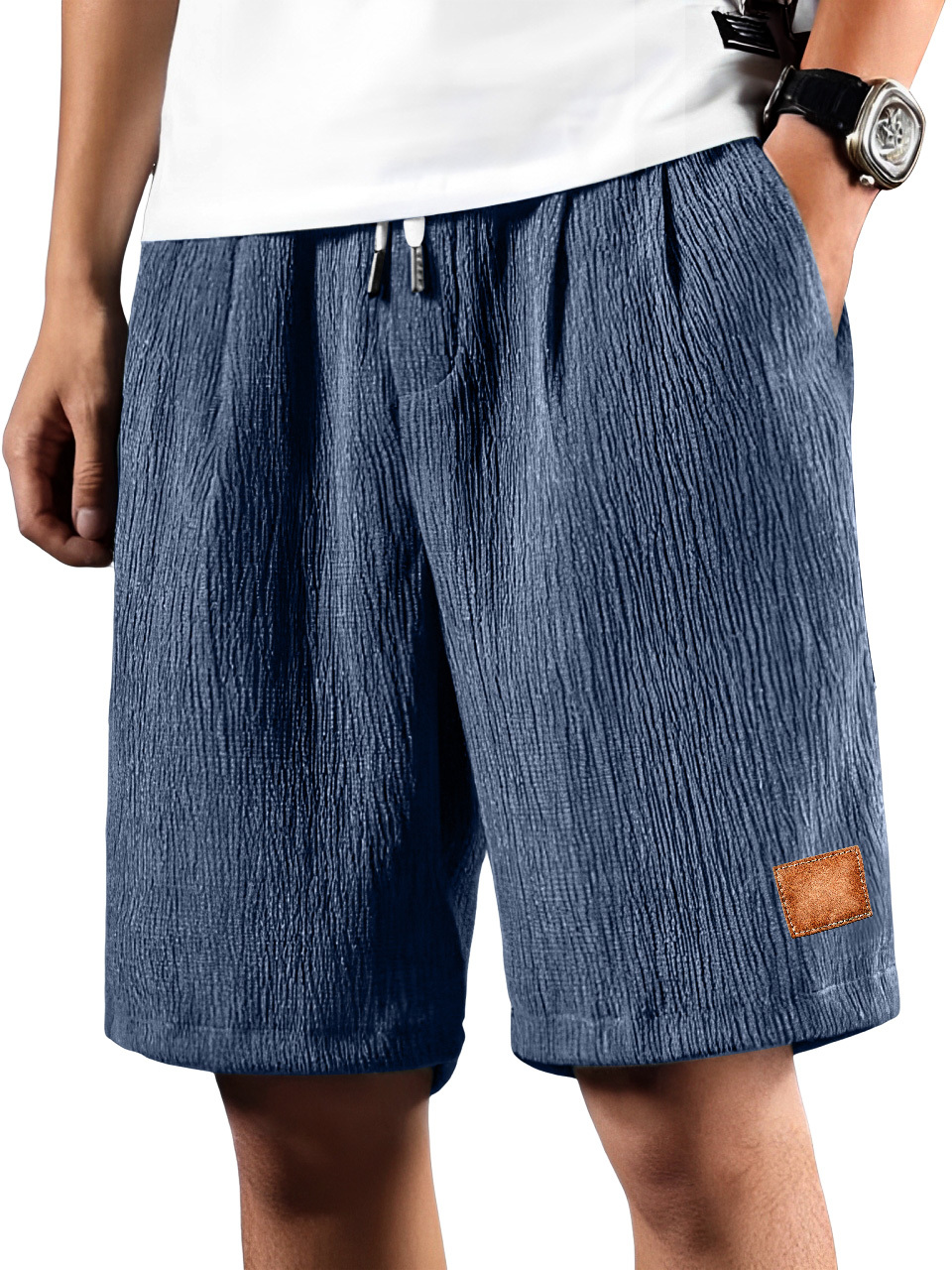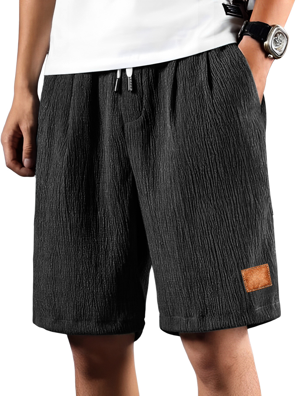 Men's Daily Pleated Texture Embroidered Logo Drawstring Casual Shorts