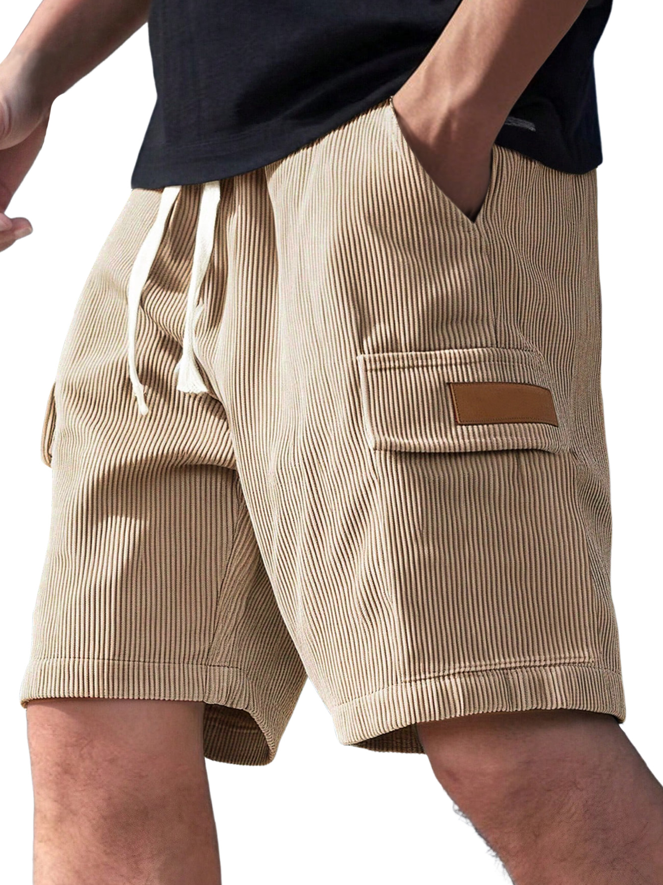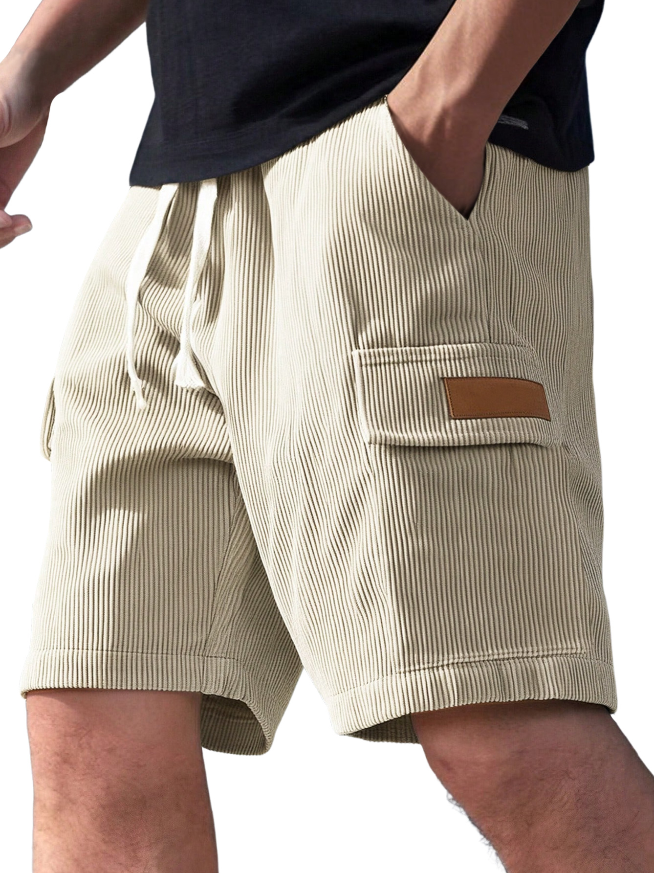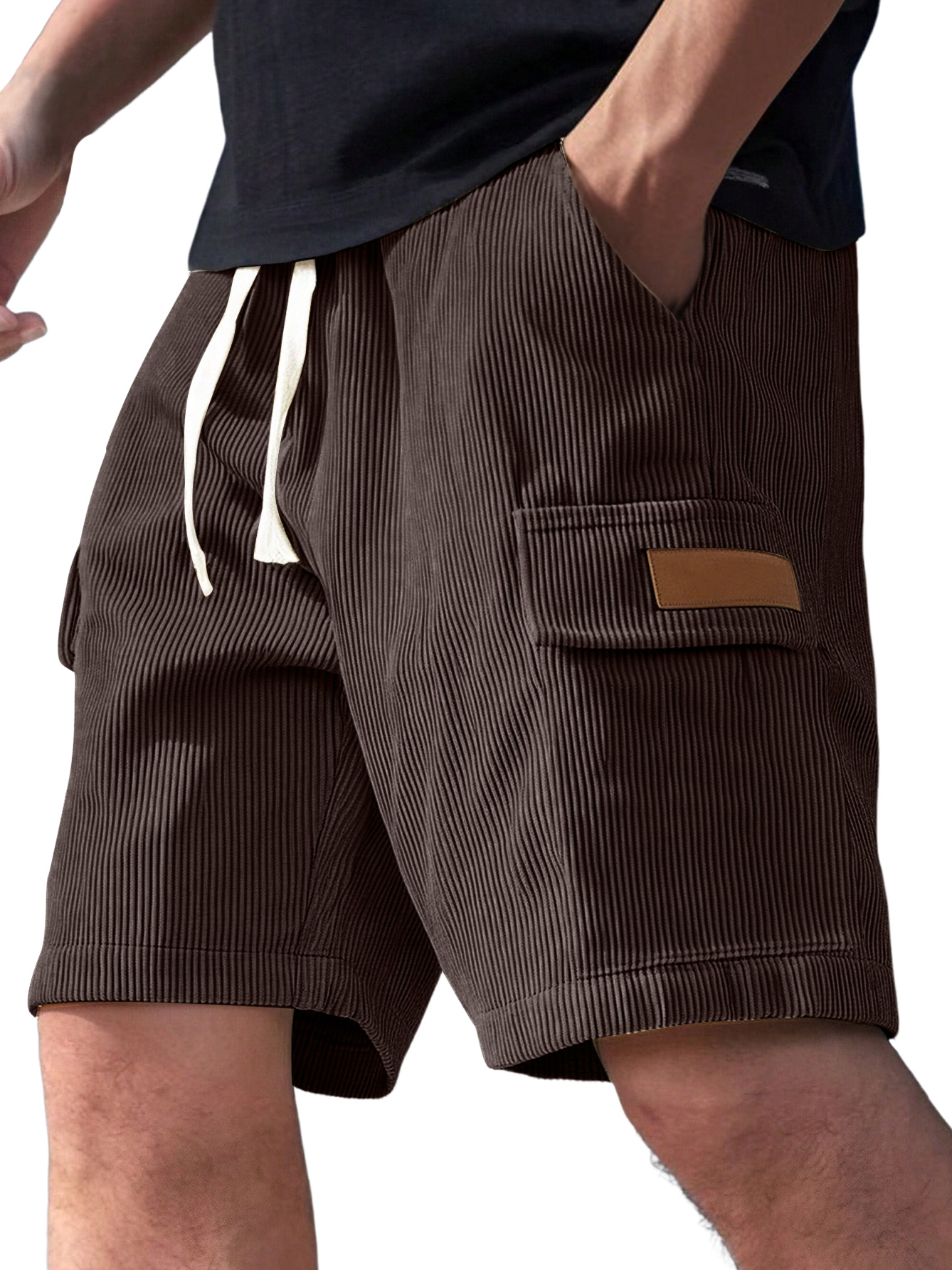 Men's Everyday Corduroy Multi-Pocket Embroidered Logo Drawstring Cargo Shorts