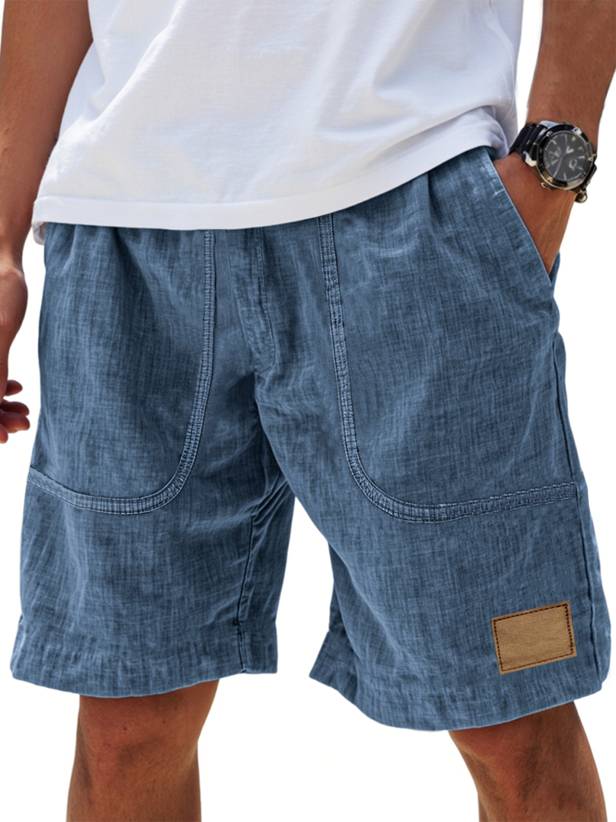 Men's Wrinkled Linen Breathable Resort Casual Embroidered Label Shorts