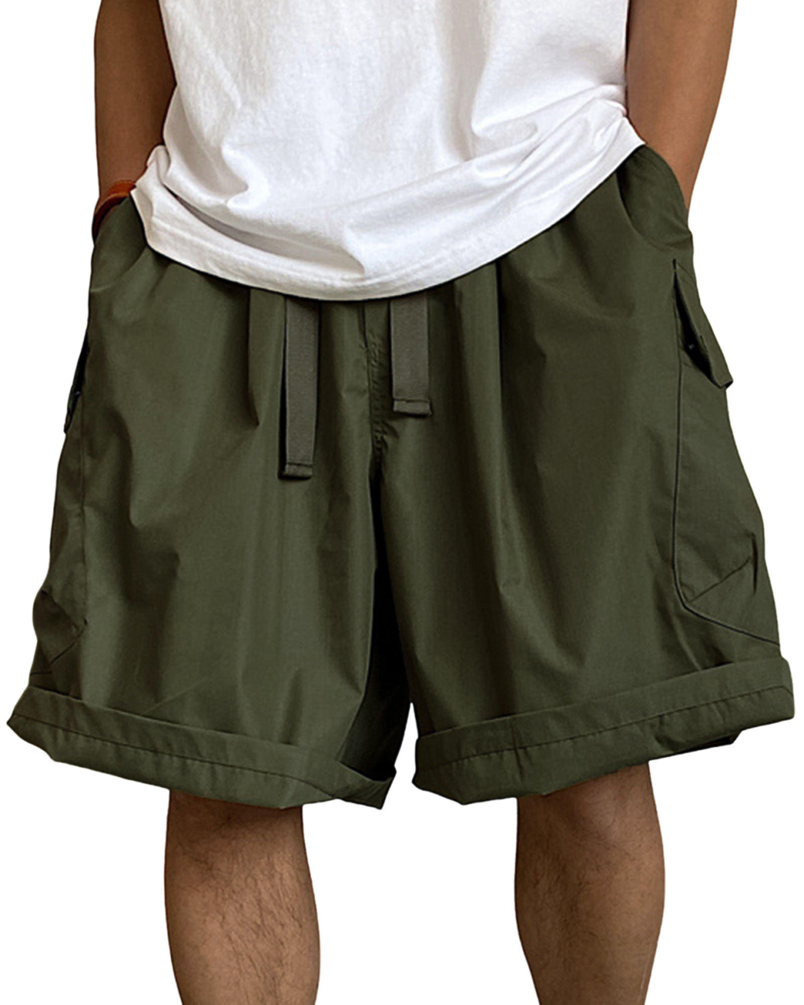 Men's Fashion Retro Outdoor Workwear Pocket Elastic Waist Drawstring Shorts