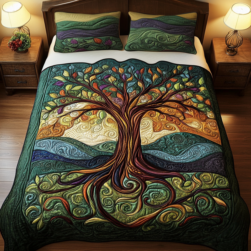 Heritage Tree 3-Piece Quilted Bedding Set NCU0VH964