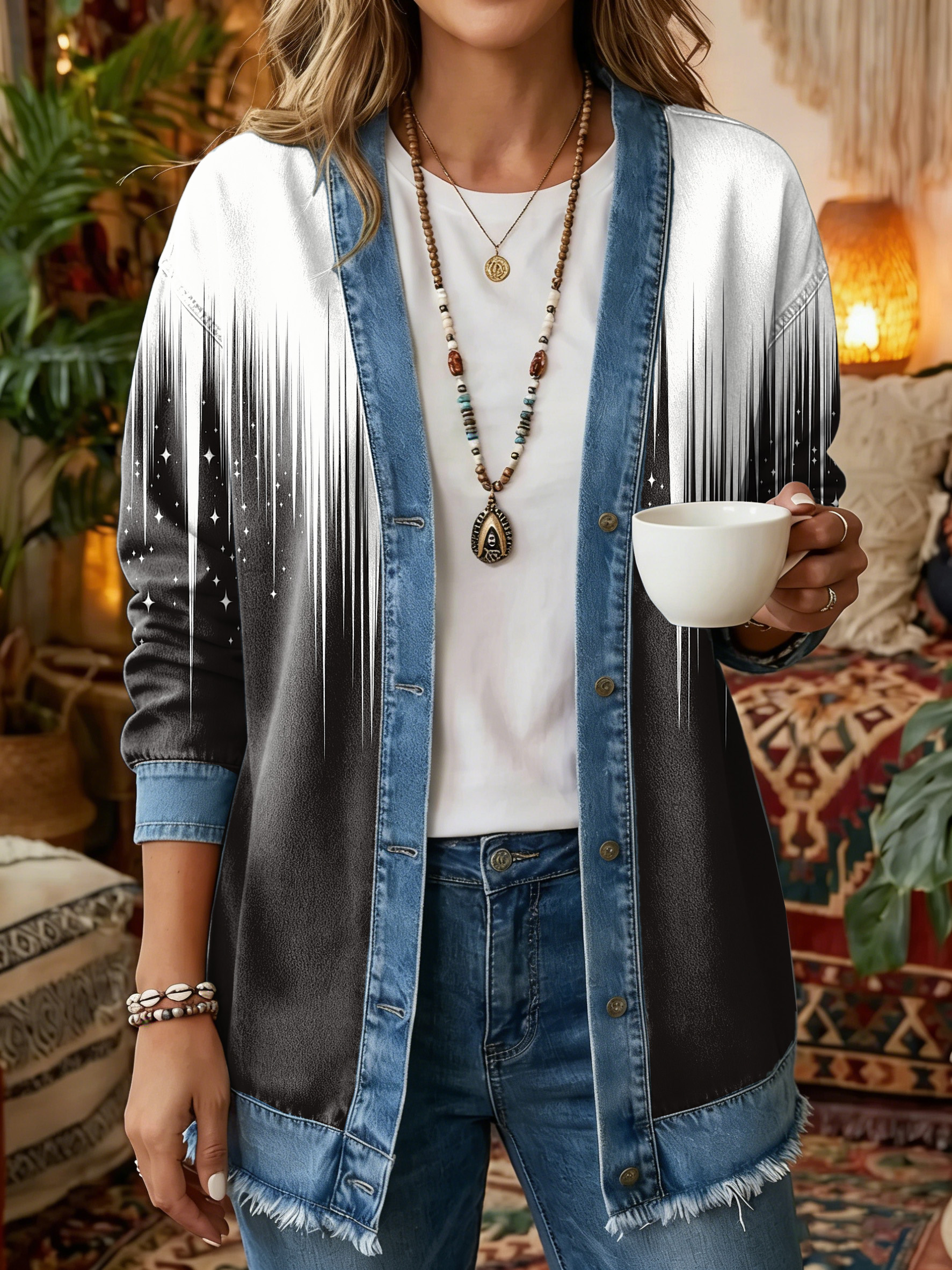 Women's Vintage Pattern Art Print Casual Long-sleeve Shirt Jacket