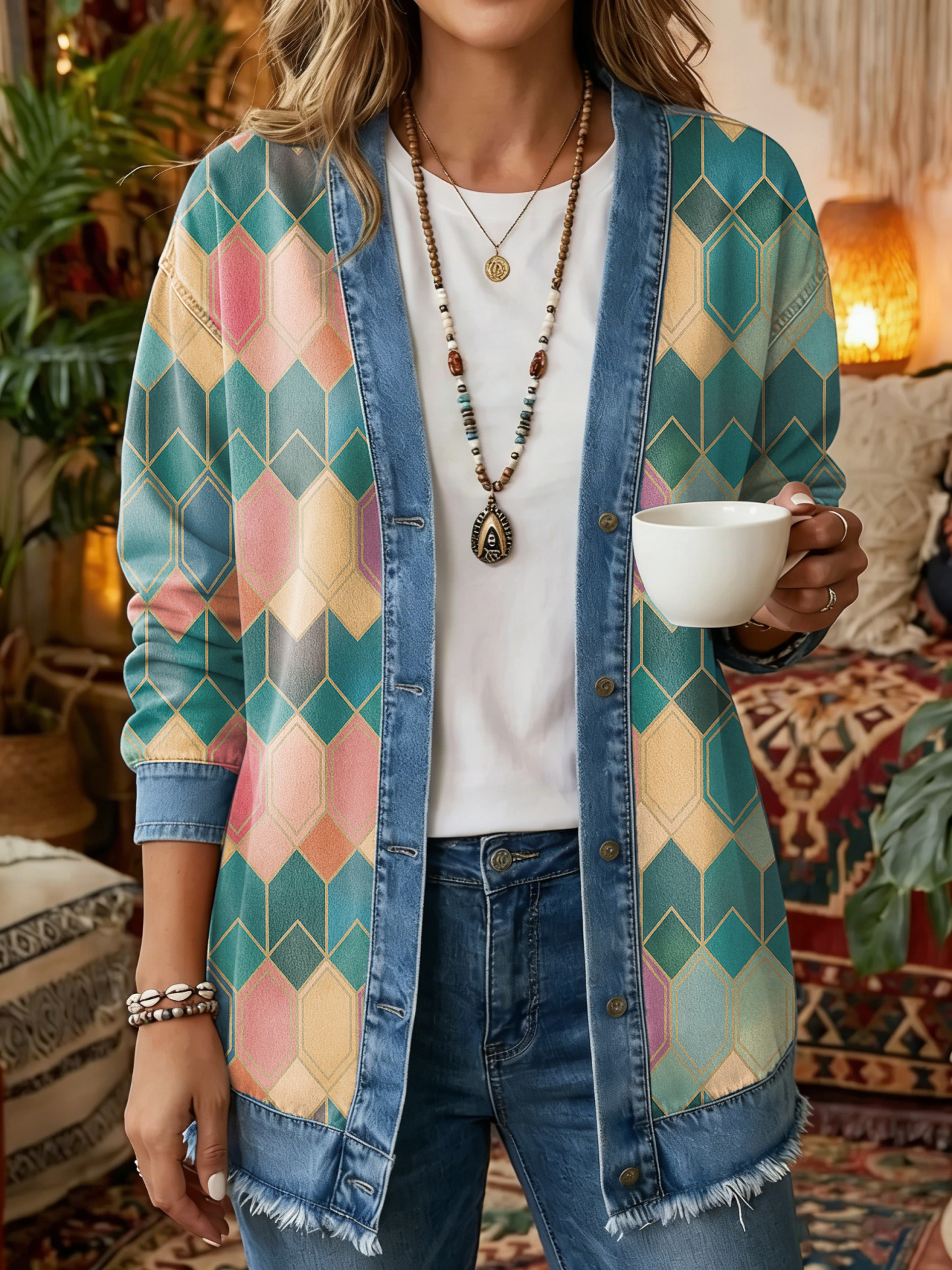 Women's Vintage Pattern Art Print Casual Long-sleeve Shirt Jacket