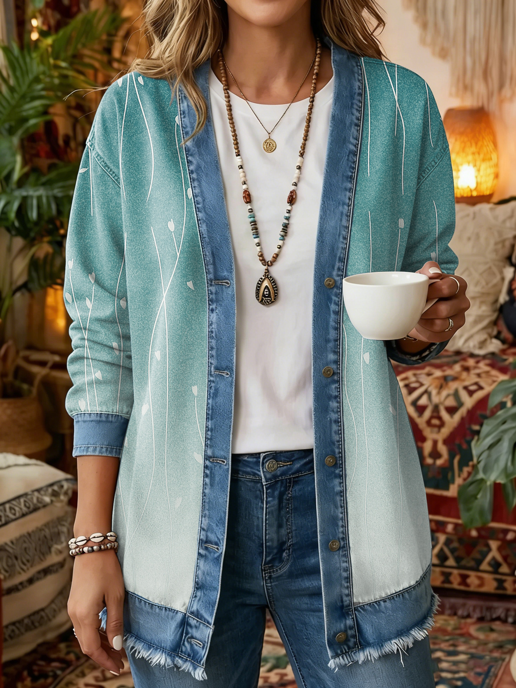 Women's Vintage Pattern Art Print Casual Long-sleeve Shirt Jacket
