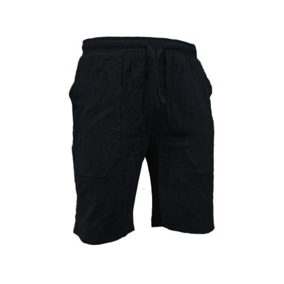 Men's summer cotton linen shorts draw rope elastic waist straight legs solid color breathable five minutes casual pants